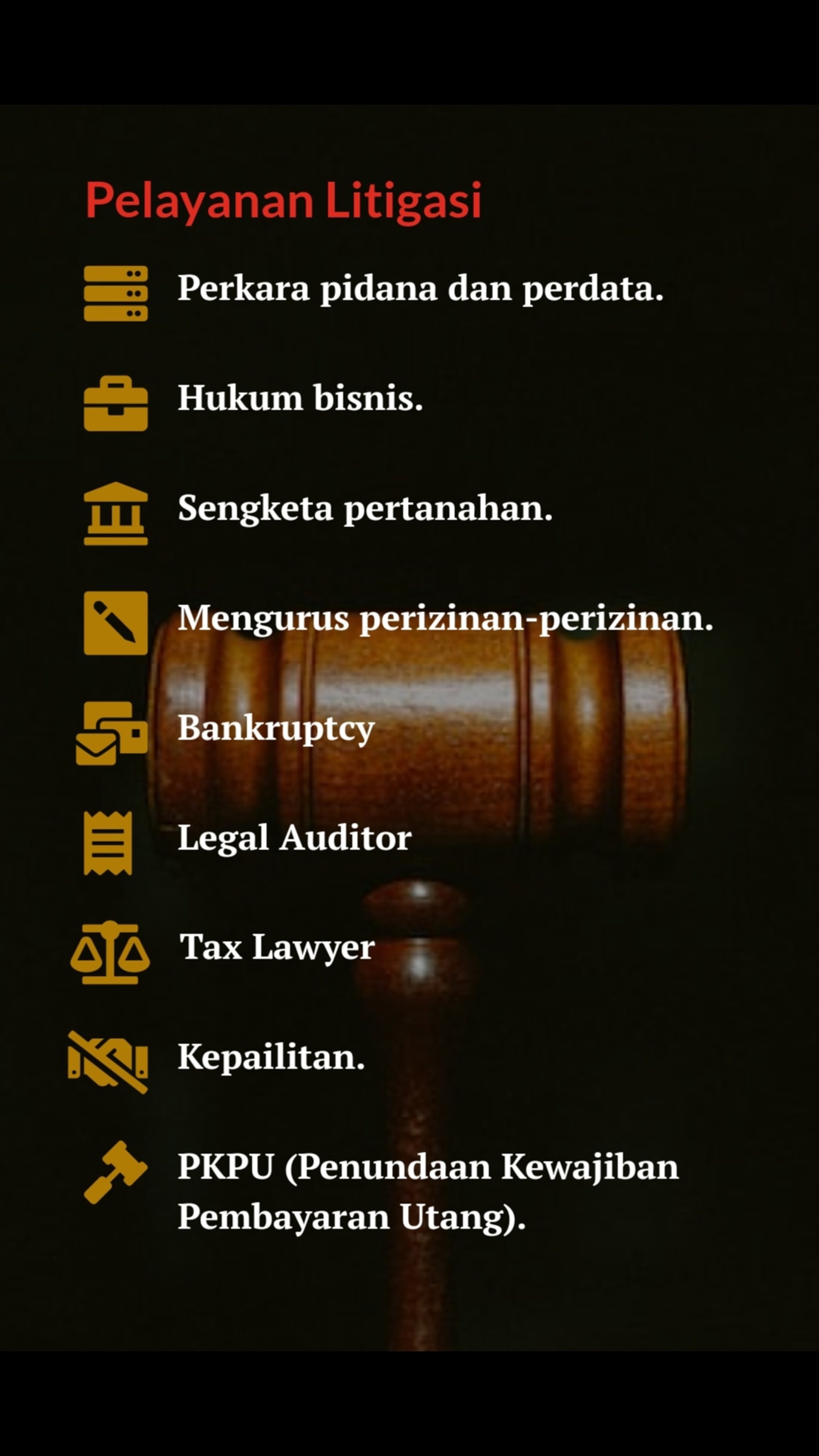 Kami mendampingi Anda dalam setiap langkah proses hukum untuk memastikan kelancaran dan kepatuhan.